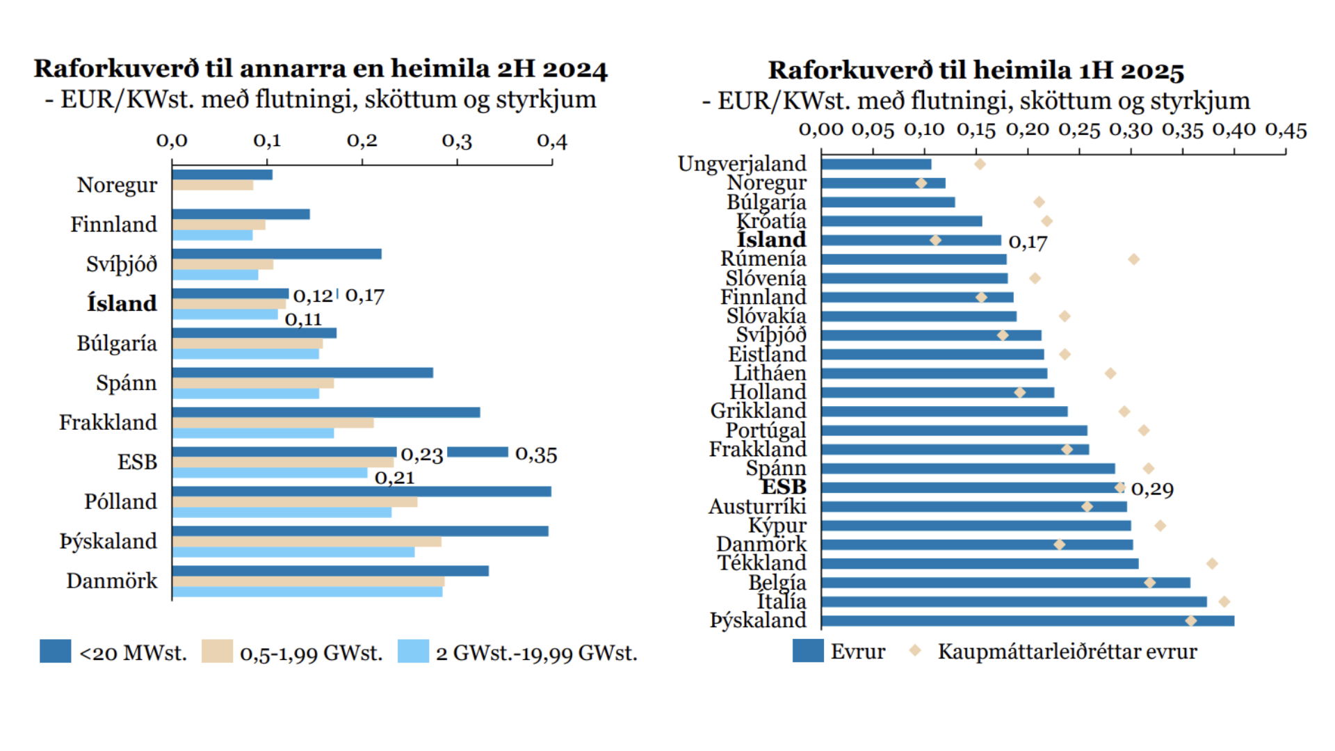 Þá er orkan tiltölulega ódýr eins og kunnugt er. Þegar Evrópuríkin eru borin saman og leiðrétt er fyrir kaupmætti sést að norsku heimilin eru þau einu sem eiga kost á ódýrari raforku en íslensku heimilin.