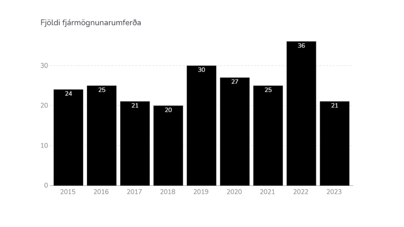 Samkvæmt skýrslunni fór fram 21 fjármögnunarumferð á síðasta ári í samanburði við 36 umferðir á árinu 2022 og leita þarf aftur til ársins 2018 til að finna minni virkni.
